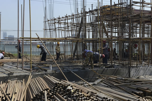 在松江花园项目现场,上百名施工人员在炎炎烈日下挥洒着汗水,奋战在工地。该项目主要服务于稻谷溪湿地公园双征安置,总投资约4500万元,目前1号至5号楼的主体工程建设已全面铺开,预计今年底完成主体结构,2018年2月主体封顶。