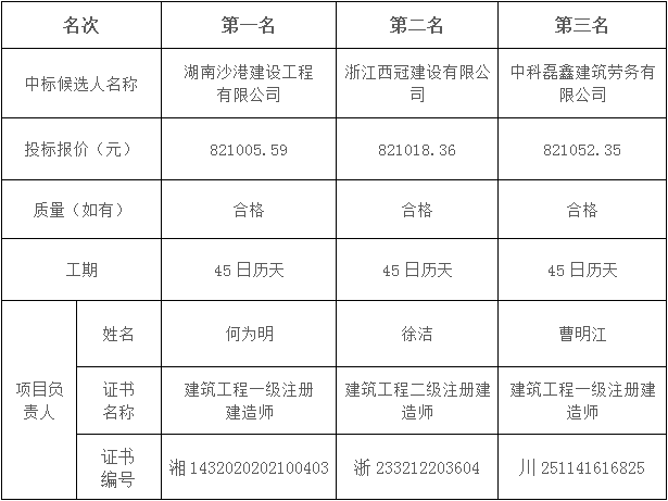 松江花园(二期)8#楼商业室内装修改造工程于2022年11月30日至12月01日发布投标邀请函,于2022年12月07日15时00分在湖北松滋金松投资控股集团有限公司二楼开标室开标,并于2022年12月07日完成评标工作。根据评标委员会提交的评标报告,湖北松滋金投置业有限公司已经确认评标结果,现进行评标结果公示。