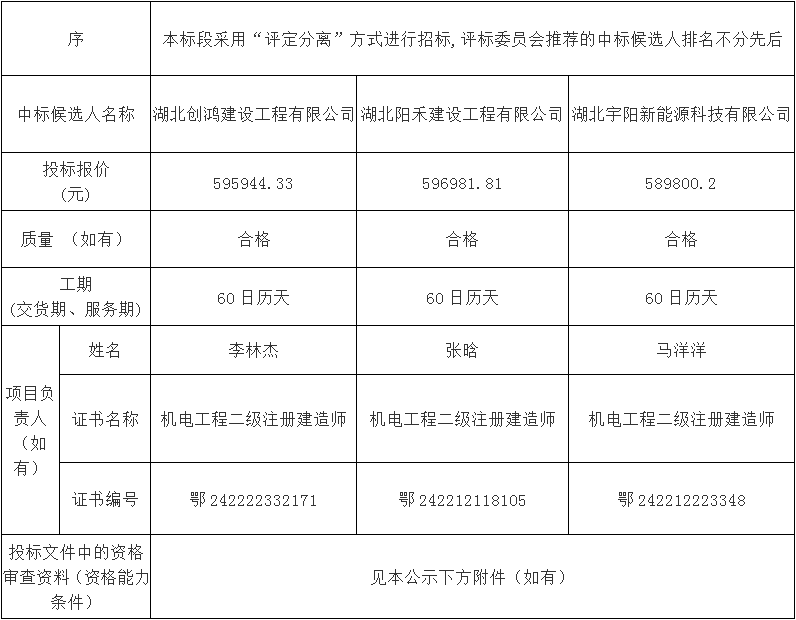 金投•新城臻品金投•新城臻品建设项目亮化工程于2024年01月26日在湖北省电子招投标交易平台发布招标公告,2024年02月29日在松滋市开标室(2)开标,并于2024年02月29日完成评标工作。根据评标委员会提交的评标报告,湖北松滋金投置业有限公司已经确认评标结果,现进行评标结果公示。