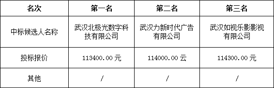 金投•划子嘴幸福家园安置小区及配套基础设施建设项目宣传片设计、制作服务采购项目于2019年1月7日发布询价邀请函,2019年1月9日在金投置业会议室开标。根据询价小组提交的评标结论,金投置业已经确认开标结果,现进行中标候选人公示。