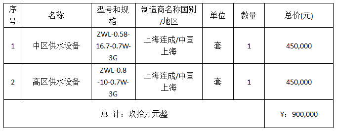 二、项目名称:湖北松滋金投置业有限公司金投•奥体庄园项目无负压供水设备项目