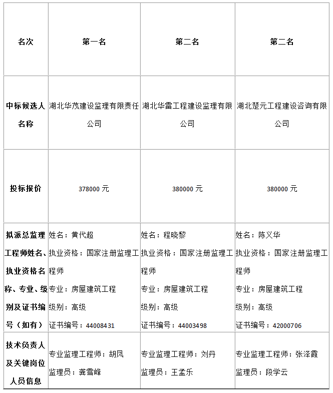 二、中标候选人情况